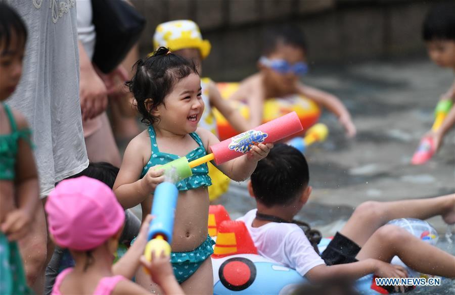Children play with water during the Taipei water festival in the Water Park of Taipei, southeast China's Taiwan, July 1, 2017. The festival, which started on Saturday, aims to raise awareness of the importance of health and the ecosystem through water-friendly facilities and activities. (Xinhua/Zhou Mi)