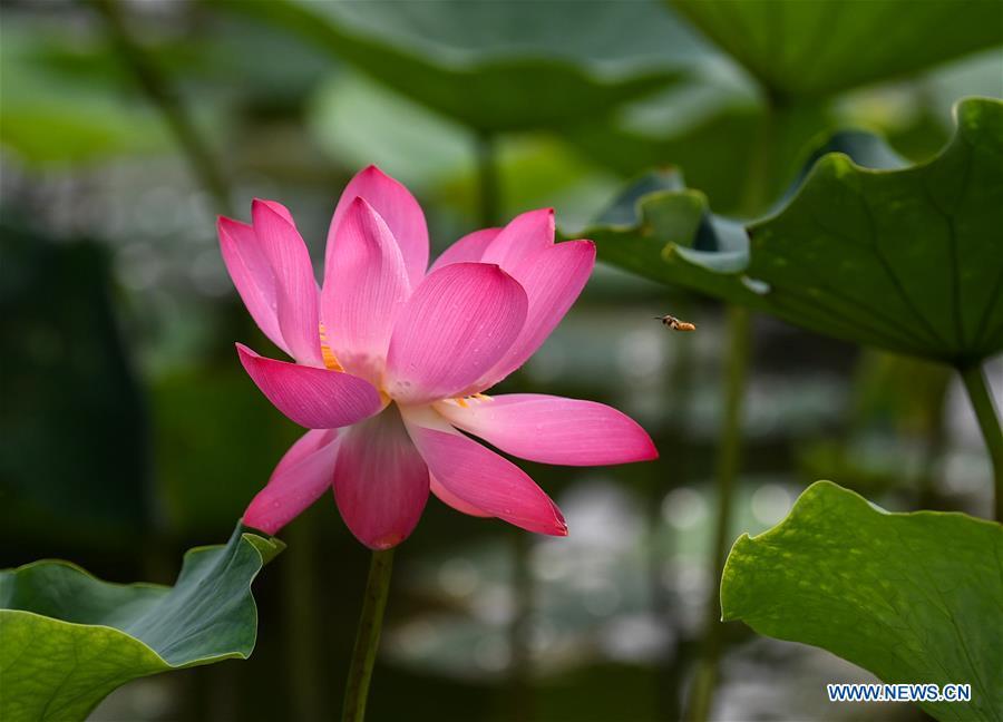 A lotus flower is seen in a park in Tianjin, north China, July 3, 2017. (Xinhua/Zhang Chaoqun)