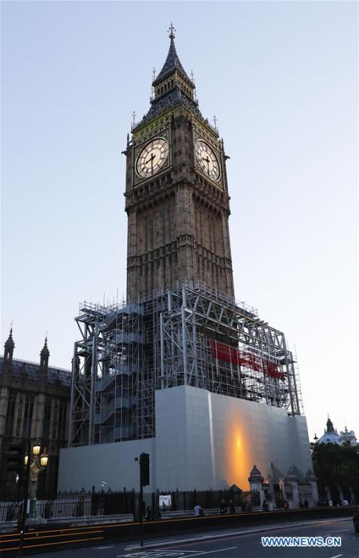 Photo taken on April 27, 2016 shows the Big Ben in central London, Britain. London's famous Big Ben will chime for the last time on Monday (Aug. 21) when the famous Great Bell falls silent until 2021. (Xinhua/Han Yan)