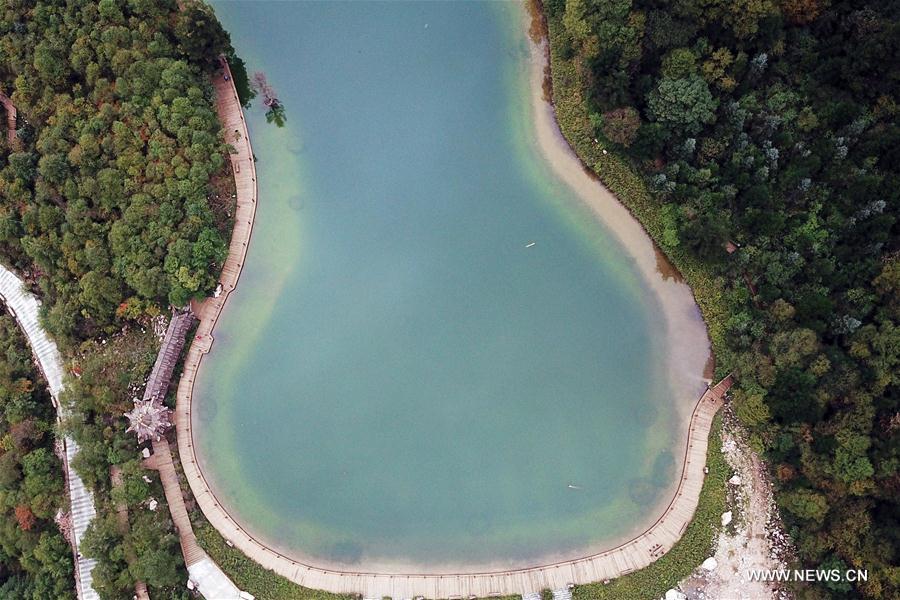 Aerial photo taken on Sept. 19, 2017 shows the scenery of Guanegou National Forest Park at Dangchang County in Longnan City, northwest China's Gansu Province. (Xinhua/Liu Chan)
