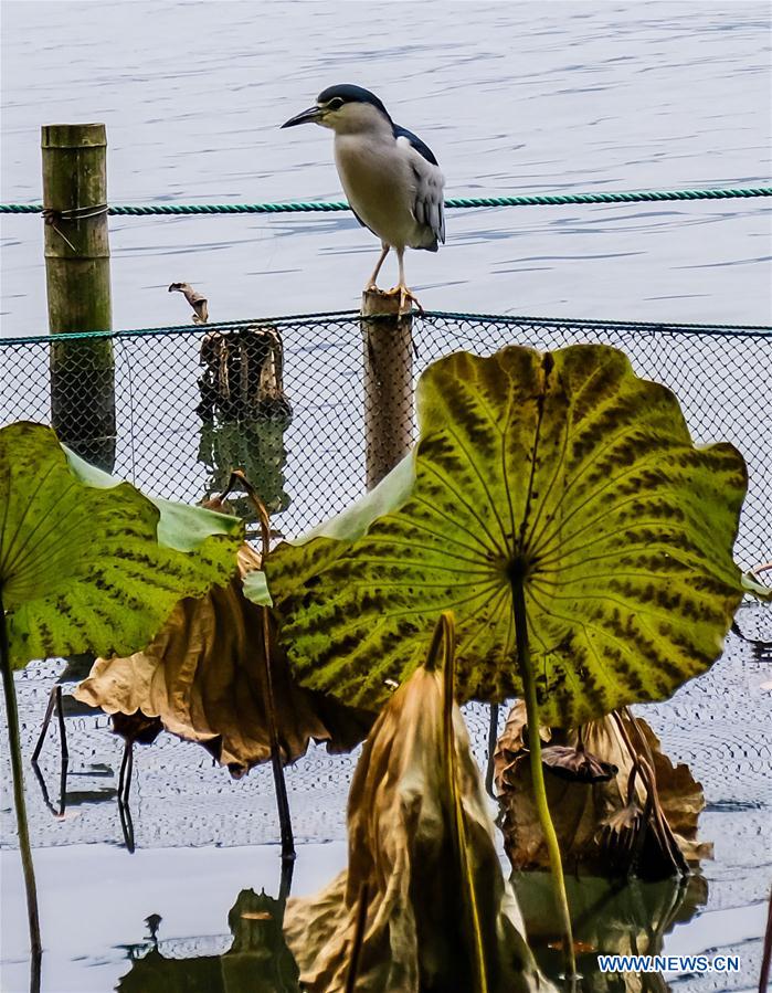 A bird is seen at the West Lake scenic spot in Hangzhou, capital of east China's Zhejiang Province, Dec. 13, 2017. (Xinhua/Xu Yu)