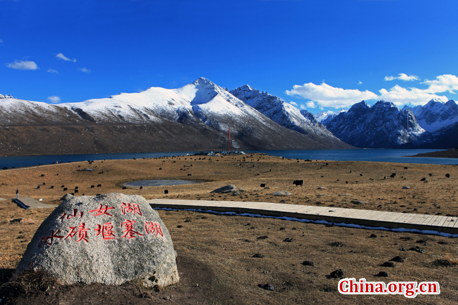 Located in Baiyu village, Jiuzhi county of northwest China's Qinghai province, Nianbaoyuze means holly cloud ear and stone peak in Monogolian language. At its feet lies two intoxicating lakes. The bigger one named Fairy Lake looks like a pair of beautiful eyes. [China.org.cn/Photo by You Bing]
