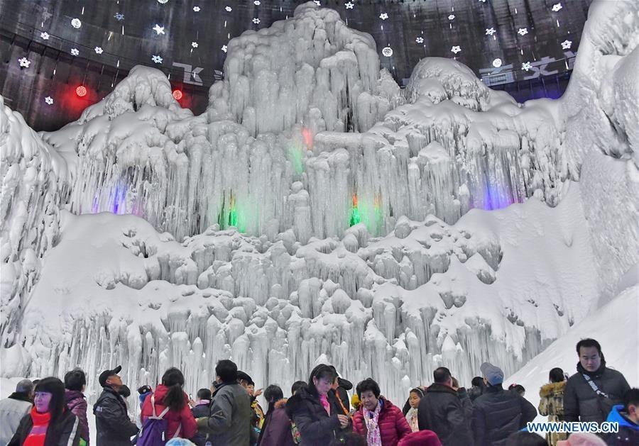 The iced waterfall in the Longqing Gorge (Photo/Xinhua)