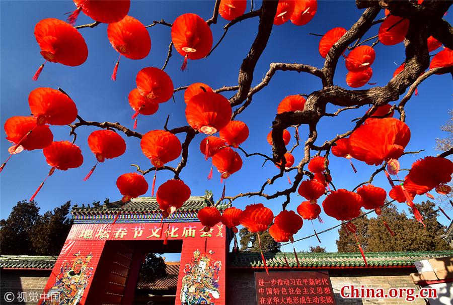 Various red lanterns are hung up in Ditan Park in Beijing, capital of China, Jan. 25, 2018. Spring Festival, or Chinese Lunar New Year, will fall on Feb 16 this year. The Spring Festival is the most important festival for the Chinese people and is when all family members get together, just like Christmas in the West. [Photo/VCG]