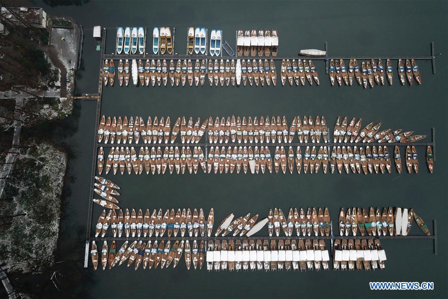 Aerial photo taken on Jan. 25, 2018 shows the snow scenery of West Lake in Hangzhou, east China Zhejiang Province, Jan. 25, 2018. Hangzhou has seen snow since Wednesday. The Zhejiang provincial meteorological center said that rain and snow will continue until the end of this month. (Xinhua/Huang Zongzhi)