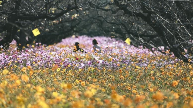 Tourists visit a garden of cosmoses at the Liushuwan scenic area in Huai'an, east China's Jiangsu Province, Oct. 18, 2018. (Xinhua/Zhao Qirui)
