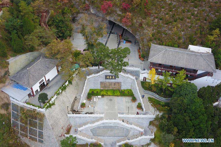 Photo taken on Oct. 29, 2018 shows the exterior scenery of Wanxiang karst cave in Hanwang Township, Longnan City, northwest China's Gansu Province. (Xinhua/Fan Peishen)