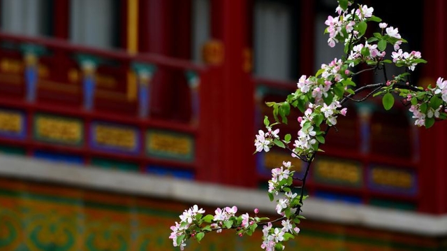 This undated file photo shows Chinese cherry apple flowers in the Palace Museum in Beijing, capital of China. (Xinhua/Palace Museum)