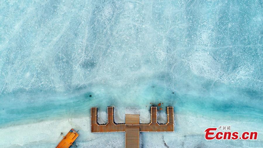 A view of the Zhangye National Wetland Park in Zhangye City, Northwest China's Gansu Province as it is partially frozen in the latest cold front. (Photo: China News Service/Wang Chao)