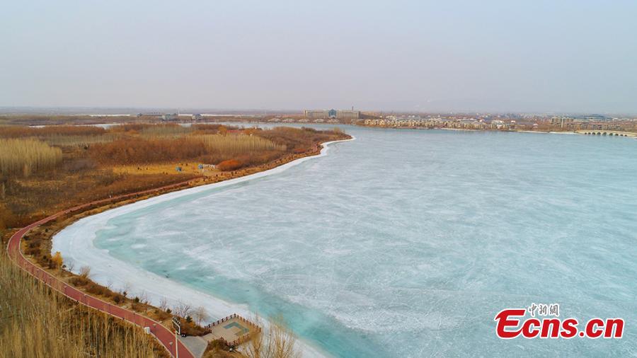 A view of the Zhangye National Wetland Park in Zhangye City, Northwest China's Gansu Province as it is partially frozen in the latest cold front. (Photo: China News Service/Wang Chao)