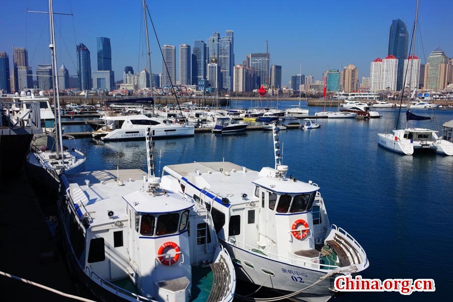 The Qingdao International Sailing Centre is a sailing marina located on the former site of the Beihai Shipyard by Qingdao's Fushan Bay at Shandong Province in China. It was constructed for the 2008 Summer Olympics. It hosted the Olympic and Paralympic Sailing competitions. [China.org.cn/Photo by Han Jiajun]