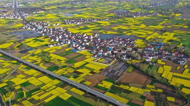 Photo taken on March 28, 2019 shows fields of cole flowers at Xinji Township in Hanzhong City, northwest China's Shaanxi Province. (Xinhua/Song Xiaoli)