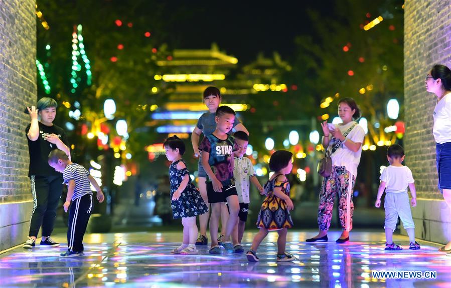 Children enjoy themselves under a gate of the Zhengding ancient town in Zhengding County of Shijiazhuang, north China's Hebei Province, June 3, 2020. The Zhengding ancient town will gradually reopen its tourist attractions as the impact of COVID-19 ebbs away. Meanwhile, business activities under proper regulation are also encouraged as part of a government plan to revive the night-time economy. (Photo by Zhang Xiaofeng/Xinhua)