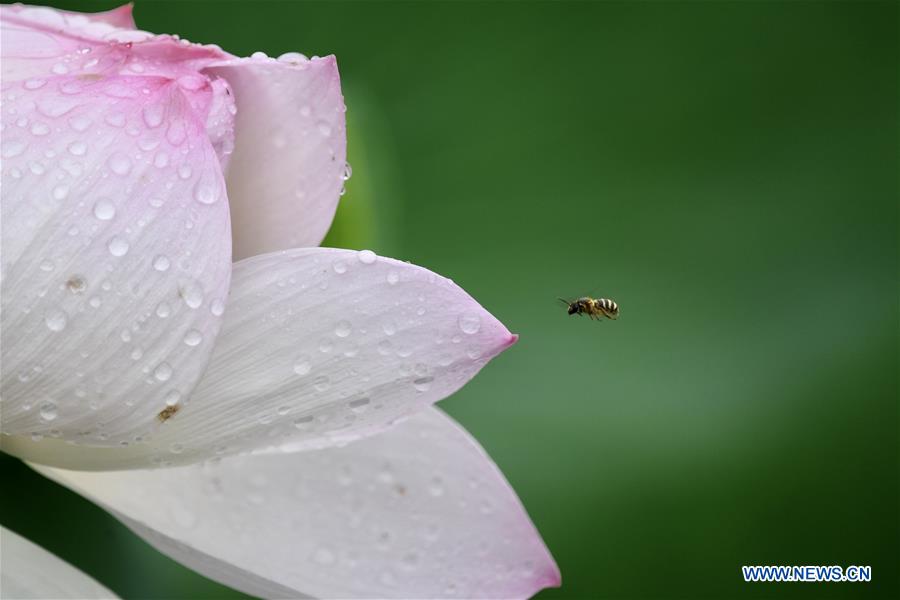 Photo taken on June 7, 2020 shows the lotus flowers at the Jinshan Park in Fuzhou, capital of southeast China's Fujian Province. (Xinhua/Jiang Kehong)