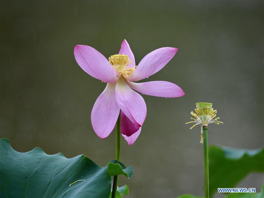 Photo taken on June 7, 2020 shows the lotus flowers at the Jinshan Park in Fuzhou, capital of southeast China's Fujian Province. (Xinhua/Jiang Kehong)