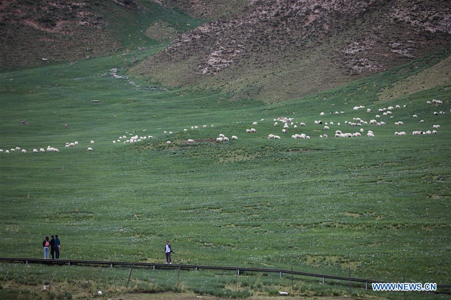 Photo taken on June 6, 2020 shows a view of the Binggouhe scenic spot in Tianzhu Tibetan Autonomous County of Wuwei City, northwest China's Gansu Province. Boasting snow mountain, forest, grassland and river, the scenic spot is a summer resort as its average temperature stays around 18 degrees Celsius in summer. (Xinhua/Ma Xiping)