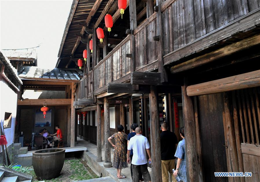 Tourists visit Ningyuan Zhuang, a historical stockaded village, in Songkou Township of Yongtai County, southeast China's Fujian Province, July 19, 2020. Multiple measures have been adopted to conserve the historical villages in Yongtai County. Cultural tourism actvities have thrived in the county's many finely preserved, stockaded villages. (Xinhua/Wei Peiquan)