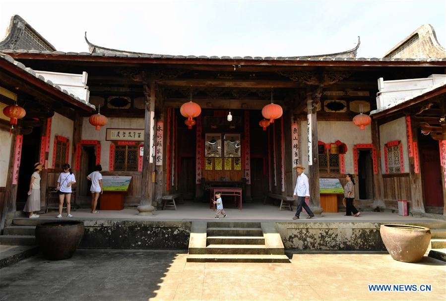Tourists visit Aijing Zhuang, a historical stockaded village, in Tongan Township of Yongtai County, southeast China's Fujian Province, July 19, 2020. Multiple measures have been adopted to conserve the historical villages in Yongtai County. Cultural tourism actvities have thrived in the county's many finely preserved, stockaded villages. (Xinhua/Wei Peiquan)