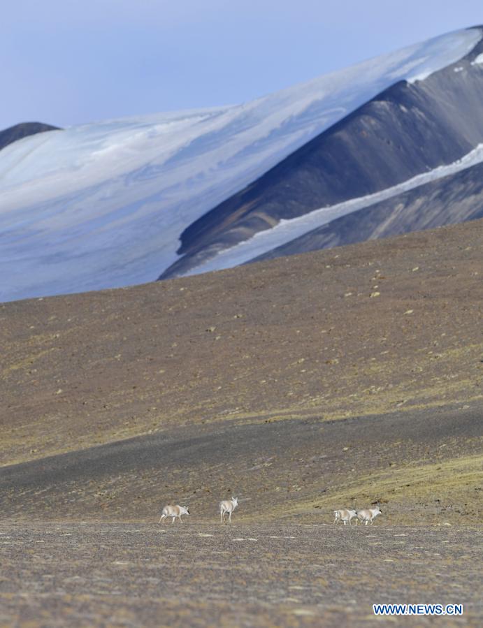 Photo taken on Jan. 15, 2021 shows Tibetan antelopes on northern Tibetan plateau, southwest China's Tibet Autonomous Region. (Xinhua/Shen Hongbing)