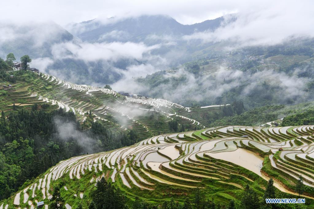 Photo taken on May 4, 2021 shows the terraced fields in Congjiang County, southwest China's Guizhou Province. (Xinhua/Yang Wenbin)