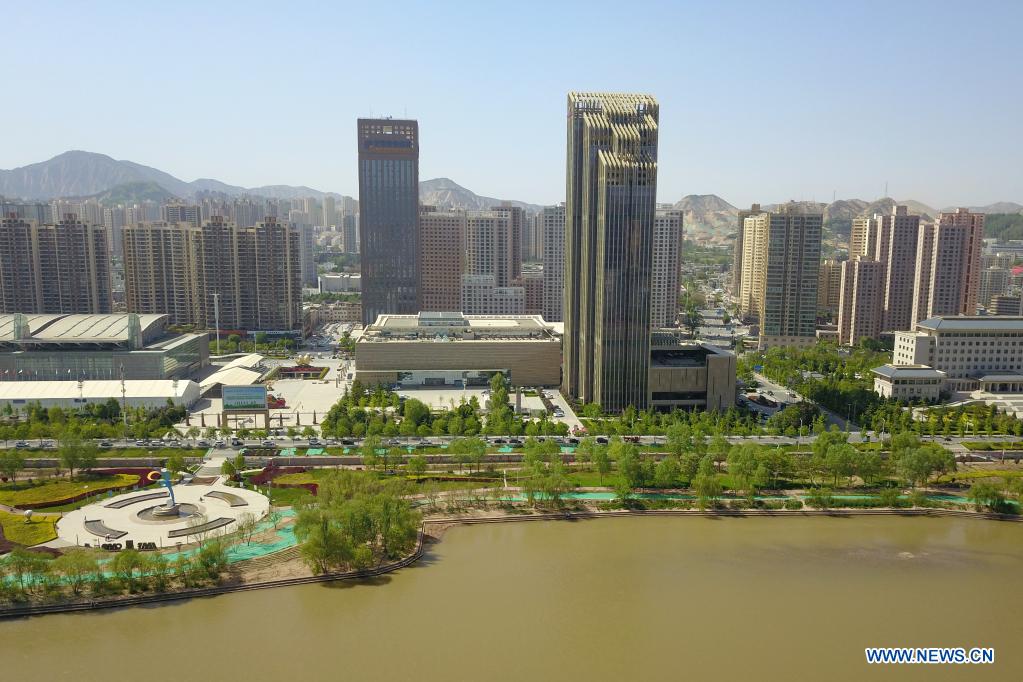 Aerial photo taken on May 8, 2021 shows a section of the Yellow River in Lanzhou, capital of northwest China's Gansu Province. The Yellow River, China's second-longest waterway, is dubbed a "mother river" in the country. The river flows through nine provincial-level regions, supplying water to 12 percent of China's population. With the mainstream of the river running through, Lanzhou has a profound bond with the river. Around 35 years ago, a sculptor named He E designed a statue to express her deep love to the mother river. The statue, named as "Yellow River -- the Mother," is her masterpiece and becomes a local resort along the riverside. (Xinhua/Fan Peishen)