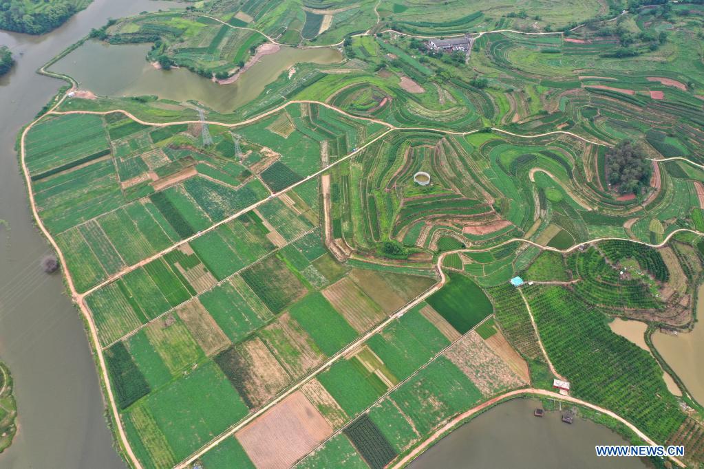 Aerial photo taken on May 9, 2021 shows the fields in Pumiao Township of Nanning City, south China's Guangxi Zhuang Autonomous Region. (Xinhua/Zhou Hua)