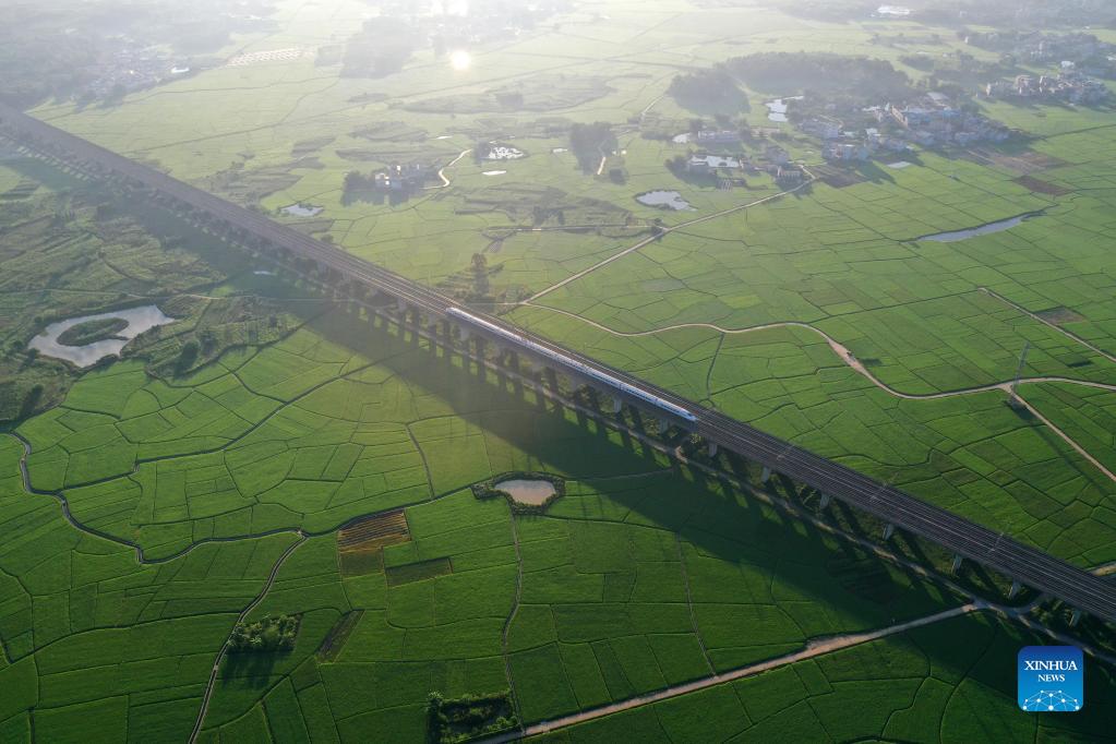 Aerial photo taken on Sept. 23, 2021 shows fields in Liyuan Village of Binyang County, south China's Guangxi Zhuang Autonomous Region. (Xinhua/Huang Xiaobang)