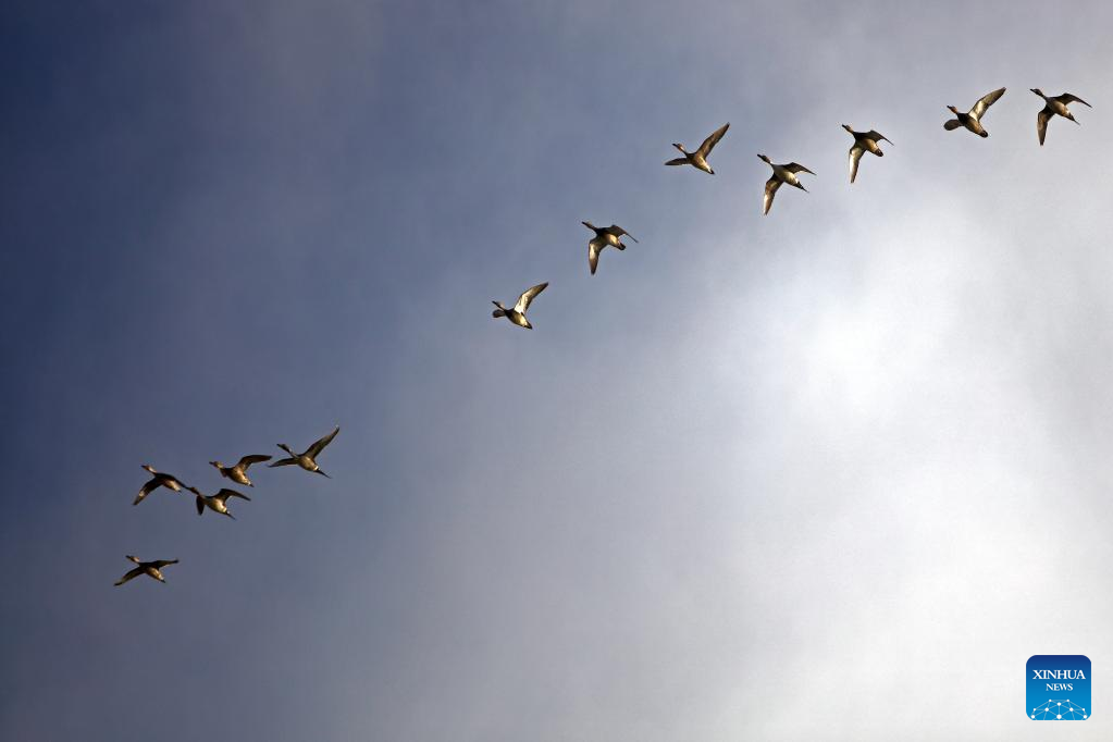 Photo taken on April 10, 2022 shows a flock of bar-headed geese in Rutog County, southwest China's Tibet Autonomous Region. Tibet has become an ideal habitat for wild animals over the years amid the region's thriving biodiversity protection endeavors.
