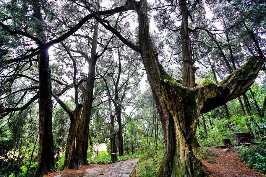 Cuiyun Corridor in Guangyuan City of Sichuan is also called the Corridor of Royal Cypresses. It was a green corridor on the Shu Roads, a system of ancient mountain roads joining Shaanxi and Sichuan since the 4th century BC. Lined up by nearly 10,000 lush cypresses planted during the Qin Dynasty on both sides, the corridor is so far the oldest and best-preserved ancient land transportation route in the world and thus reputed as the No. 1 Ancient Road in the World and a living fossil of land transportation. Zigzagging for three hundred Li, the corridor consists of three roads stretching from Jiange Ancient Town to Zitong in the west, Zhaohua in the north and Langzhong in the south.