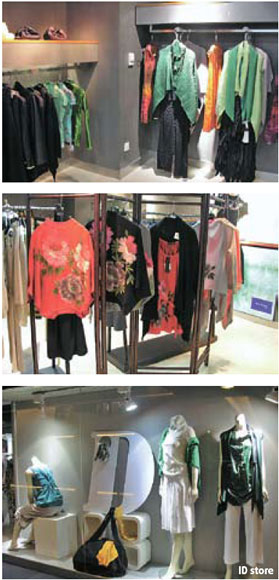 ID (Innovation Design) invited about a dozen creative local designers to exhibit their wares at its 600-sq-m store. The list includes big names like Wu Xueka, represented by his very chic brand Zuura, and Chen Wen, who specializes in elegant denim designs. There is also one of my personal favorites, Liu 2, a brand developed by a young designer with the same family name. Liu's collection features simple colors such as white, black and grey, while offering customers unique cuts and comfortable fabrics.