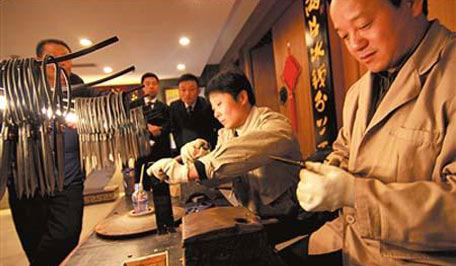 You are welcomed to sharpen your scissors here, for a cost of 5 yuan each. The live demonstration is accompanied with a collection of historical scissors and photos, an attempt to display the history of the famed brand dating back to the end of Ming Dynasty some four hundred years ago.