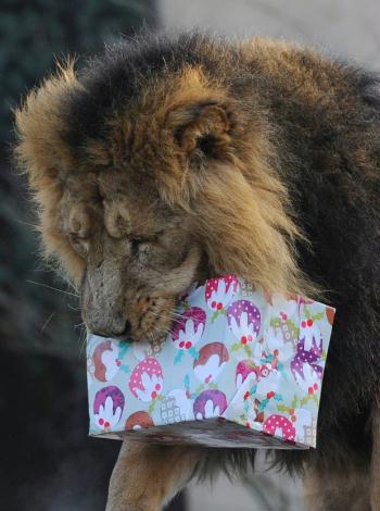 Christmas is coming soon, even for animals at the zoo. Lion cubs, penguins, gorillas and squirrel monkeys have all received special Christmas treats. Even the Aldabra tortoise got some tasty snacks.