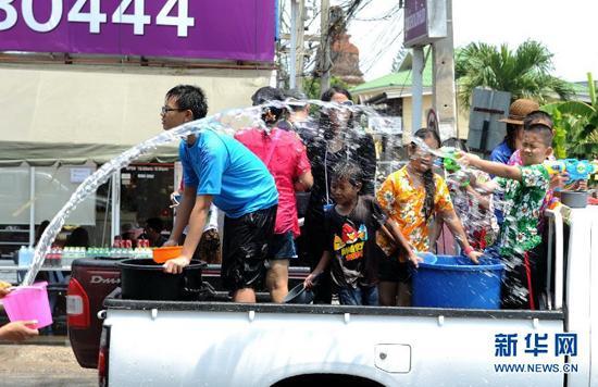 People splash water during celebrations for Songkran Festival, Thailand's traditional New Year Festival, at the Ancient City in Samut Prakan Province, Thailand, April 14, 2013. Songkran, also known as the Water Splashing Festival, started here on April 13 this year. [Xinhua] |