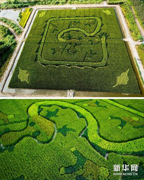 The rice field work, titled "Dragon's Dream," was initiated in April. Farmers began to grow the paddy in late April, and the painting gradually took form in the last five months.
