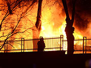 Flames are seen near the site of an explosion in downtown Ankara, Turkey, Feb. 17, 2016. At least 18 people were killed and 45 others wounded in a car bomb attack targeting the Turkish military in the capital Ankara on Wednesday, the Ankara governor said. [Xinhua] |
