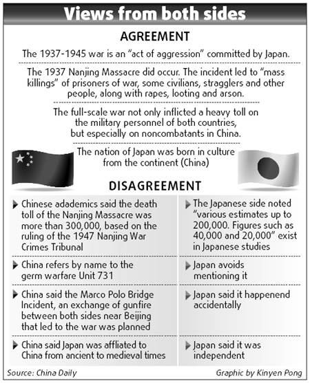 Among other points the two sides disagree on is whether Japan was affiliated to China from ancient to medieval times. However, both sides did agree "the nation of Japan was born from the culture of the (Chinese) continent".