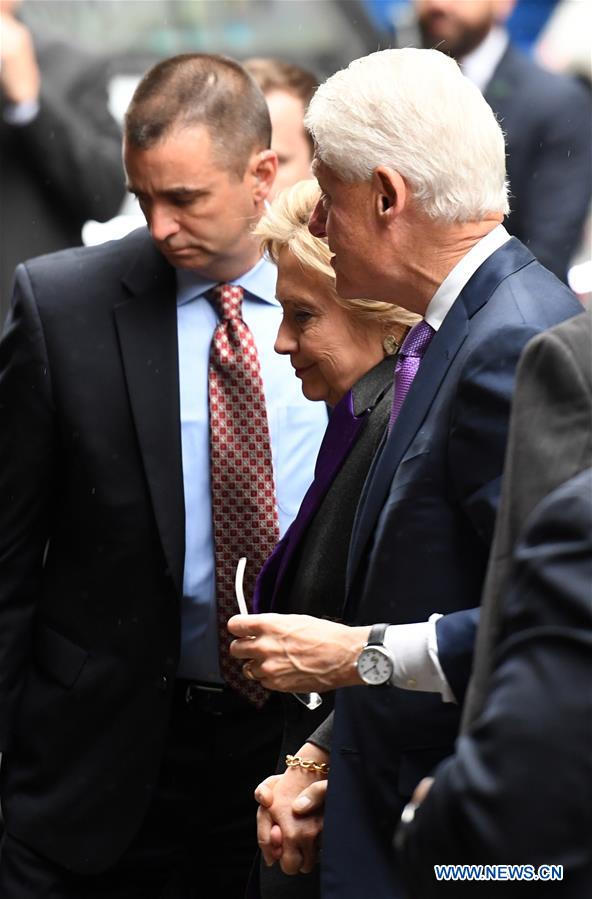 U.S. Democratic presidential nominee Hillary Clinton and her husband, former U.S. President Bill Clinton, arrive for her first public concession speech after losing the presidential election to the Republican candidate in New York, the United States, Nov. 9, 2016. [Photo/Xinhua]