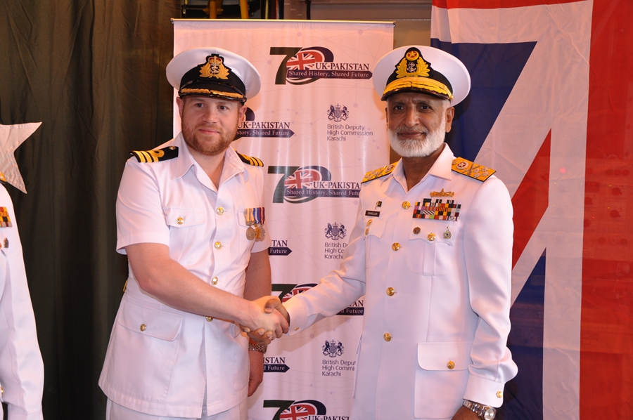 Pakistan's Chief of the Naval Staff Admiral Zakaullah visits British ship on visit to Pakistan for participating in Multinational Exercise AMAN-17 in Karachi, Pakistan, on Feb. 12, 2017. |