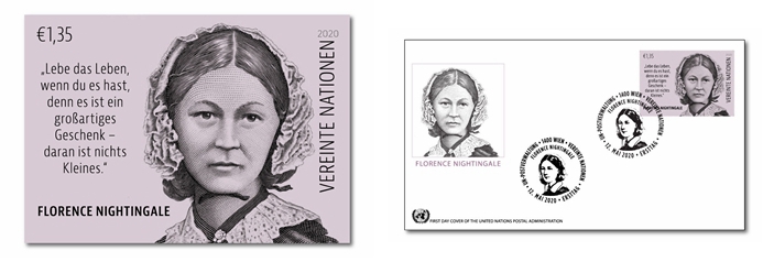 The United Nations Postal Administration (UNPA) issued the "200th birth anniversary – Florence Nightingale Year of the Nurse and the Midwife 2020 Definitive Stamp" on May 12. An online release was organized in China on Weibo with the participation of the UN, UNICEF, WHO, UNAIDS, UNESCO, UNDP, UNFPA and UN Women.
