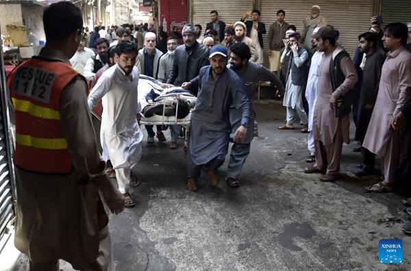 Haroon Rasheed, senior superintendent of police operations of Peshawar, told Xinhua that two terrorists tried to enter the mosque and engaged in an exchange of fire with the police personnel on duty there. One policeman was killed and another was seriously injured before the huge explosion occurred.
