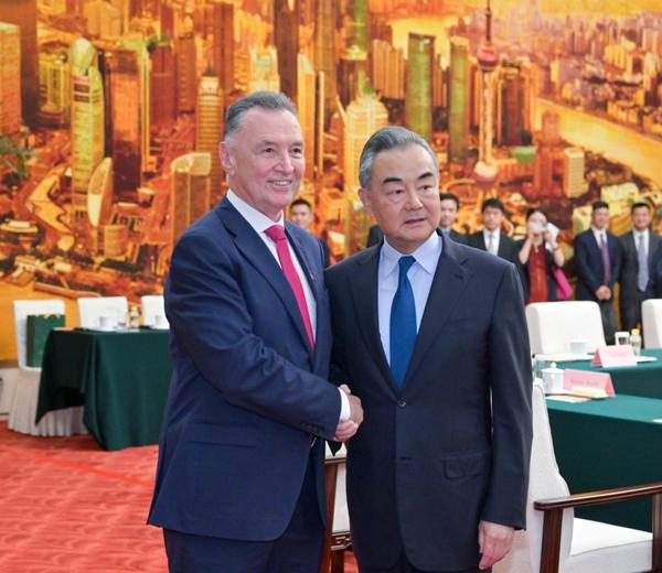 Chinese Foreign Minister Wang Yi, also a member of the Political Bureau of the Communist Party of China Central Committee, meets with Craig Emerson, head of an Australian delegation to the seventh session of the China-Australia High-Level Dialogue and former Australian Trade Minister, in Beijing, capital of China, Sept. 7, 2023. [Photo/Xinhua]