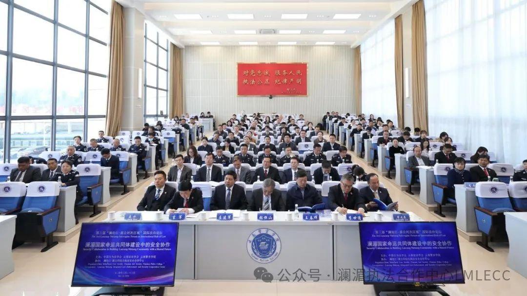 With the theme of "Security Collaboration in Building Lancang-Mekong Community with a Shared Future," the forum was hosted by China Behavioral Law Society, Yunnan Law Society, Yunnan Police College, and co-organized by the Lancang-Mekong Integrated Law Enforcement and Security Cooperation Center.
